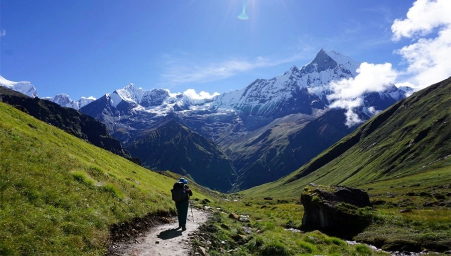 The trek to Australian Camp takes about 2.5 hours from Phedi and is suitable for beginners with moderate difficulty.